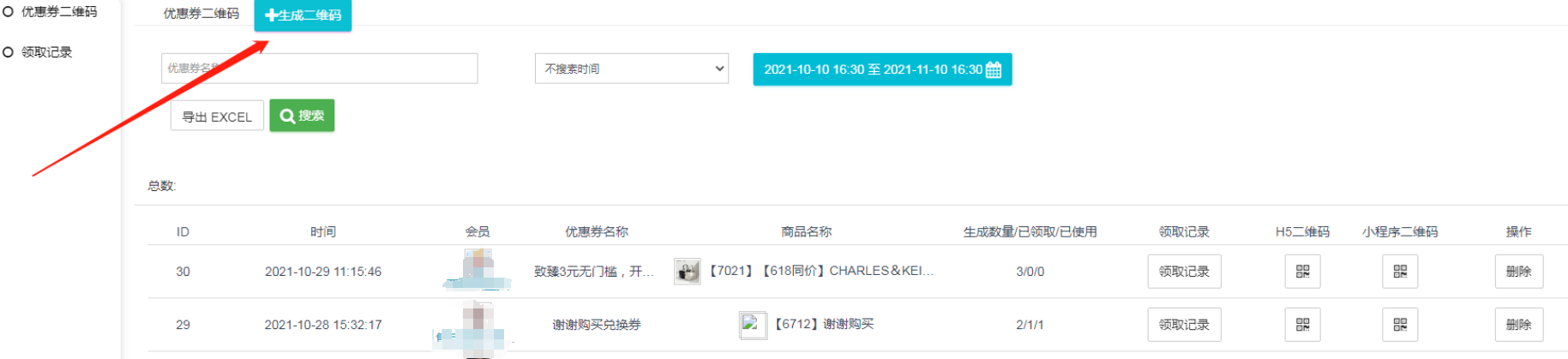 可以生成指定优惠券、指定数量的二维码,前端用户扫描二维码后领取优惠券跳转到指定产品的页面。