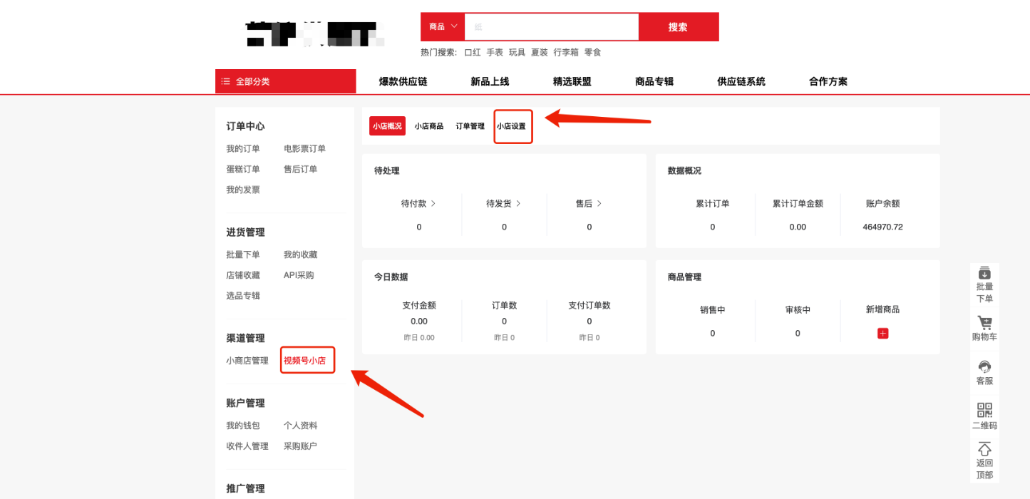 登录后在会员中心--视频号小店中可以配置管理自己的视频号