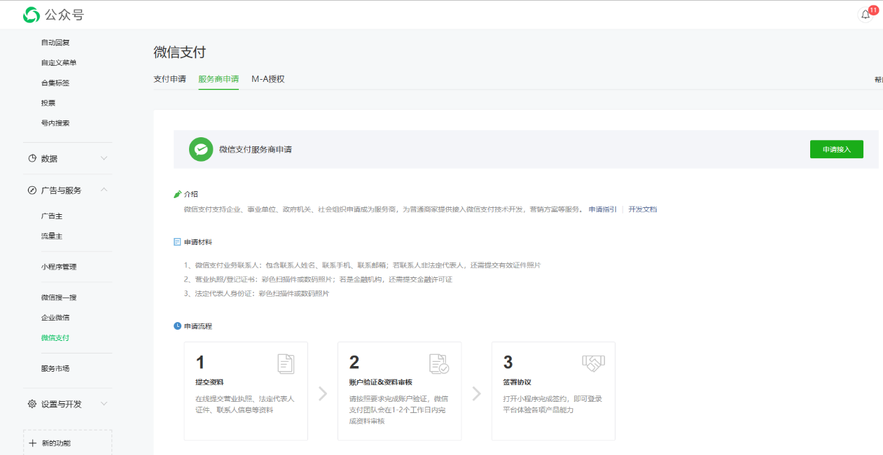 (2)通过公众号平台mp.weixin.qq.com,开通服务商