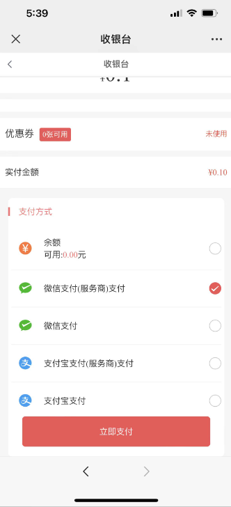 服务商商户号配置好APIV2密钥(即支付密钥,必须32位数)和申请好API证书。
