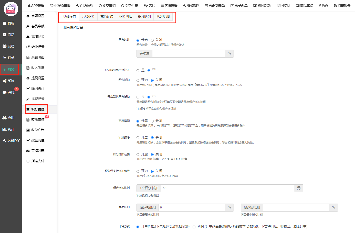一、积分(财务-积分管理)