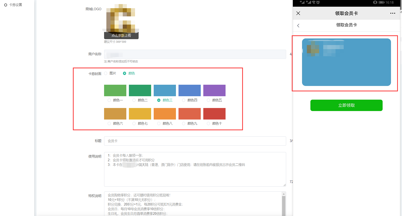4、商城logo:会员卡的logo,建议尺寸300x300,或正方型图片