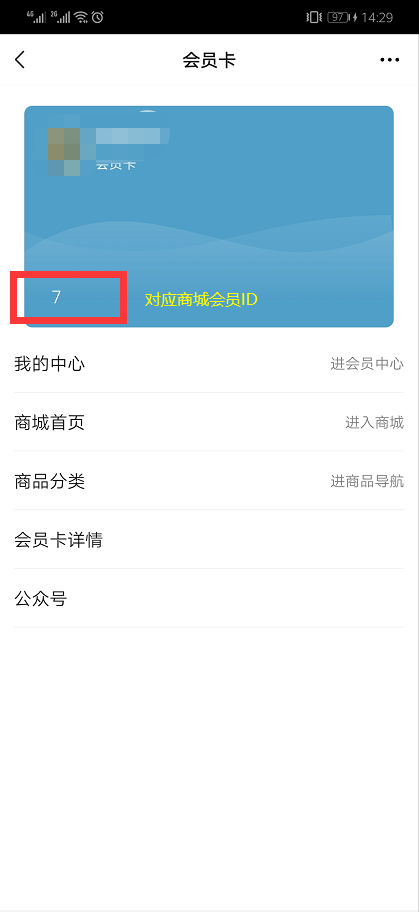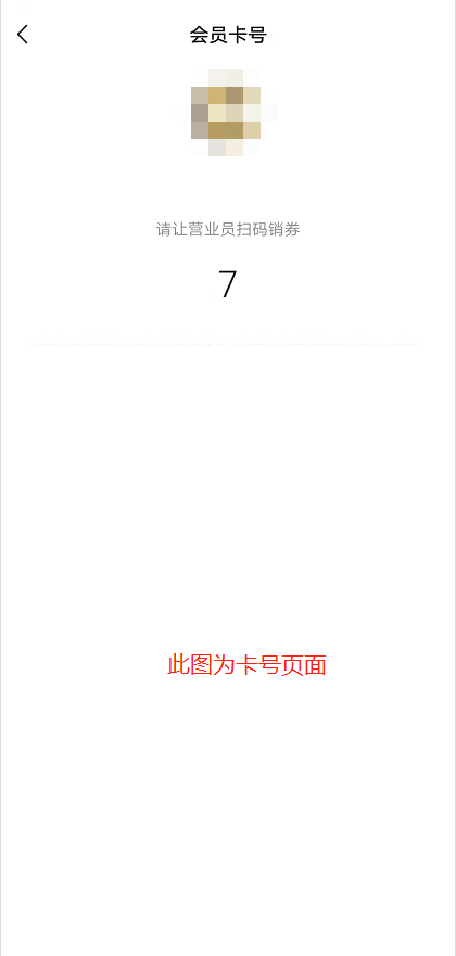 注意:点击会员ID可进入卡号页面,是没有核销码显示的,是正常的,如下图,这微信卡券仅作为引导关注公众号、进入商城的功能。