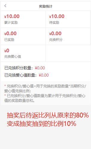 会员前端共享链界面,可点击抽奖功能抽取其他待返奖励比列。