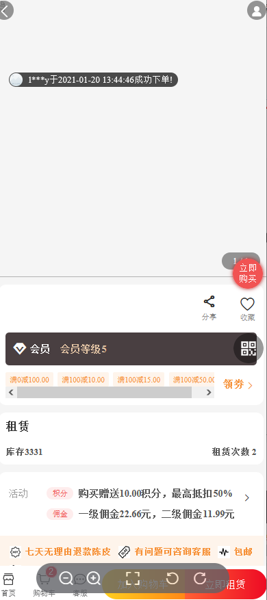 免租金:该等级享受的租赁商品免租金数量,比如设置为2,则该等级可以免租金使用2件支持该等级权益的租赁商品。