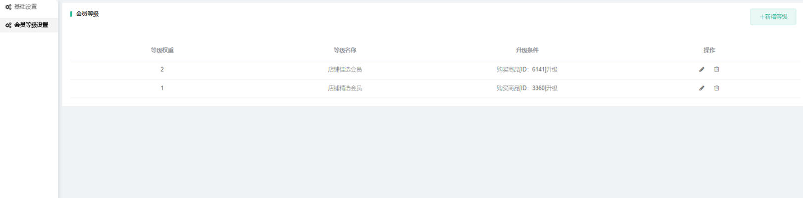 (3)升级条件:会员购买指定商品可升级会员等级。可指定多件商品,只需购买其中一件即刻升级。不填写默认不自动升级。